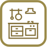 Granite platform with a stainless steel sink, providing durability and a sleek look; provision for water purifier installation.